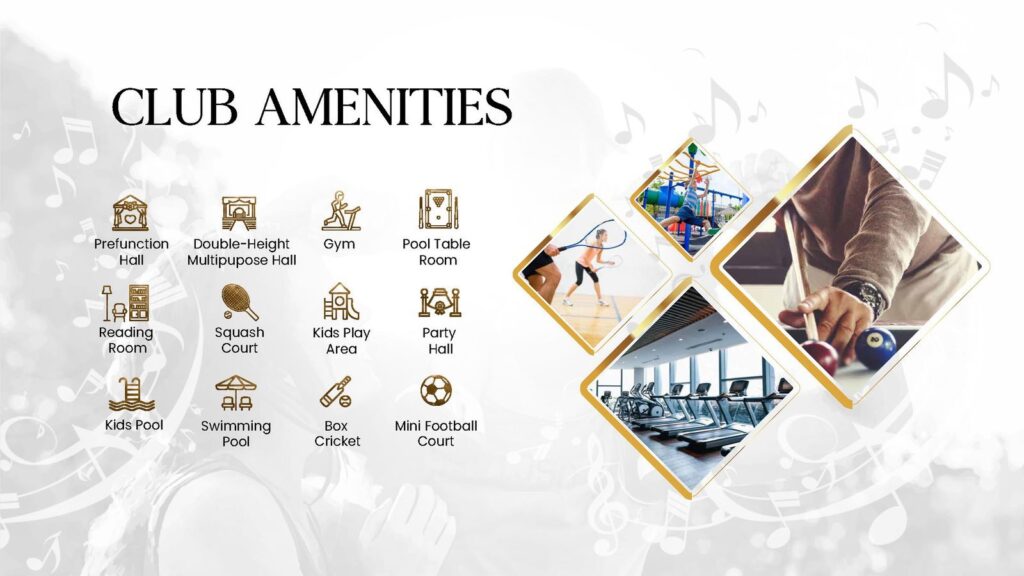 This apartment project offers modern amenities and advanced features such as a swimming pool, round-the-clock water and power supply, a well-kept clubhouse for social gatherings, a spa, fitness center, indoor and outdoor gaming zones, a secure play area for children, a designated space for senior citizens to socialize, and ample hassle-free parking for vehicles.